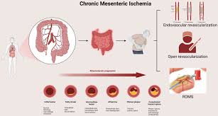 Chronic mesenteric ischemia is a serious vascular condition caused primarily by atherosclerotic narrowing of the SMA and celiac arteries, leading to intestinal ischemia. Recognizing the characteristic symptoms and obtaining appropriate imaging are critical for diagnosis. Endovascular stenting of the SMA and celiac artery has emerged as a safe and effective treatment, offering symptom relief and improved quality of life. Patients with risk factors or symptoms suggestive of CMI should consult vascular specialists promptly to explore diagnostic and therapeutic options. Early intervention can prevent severe complications and enhance long-term prognosis.